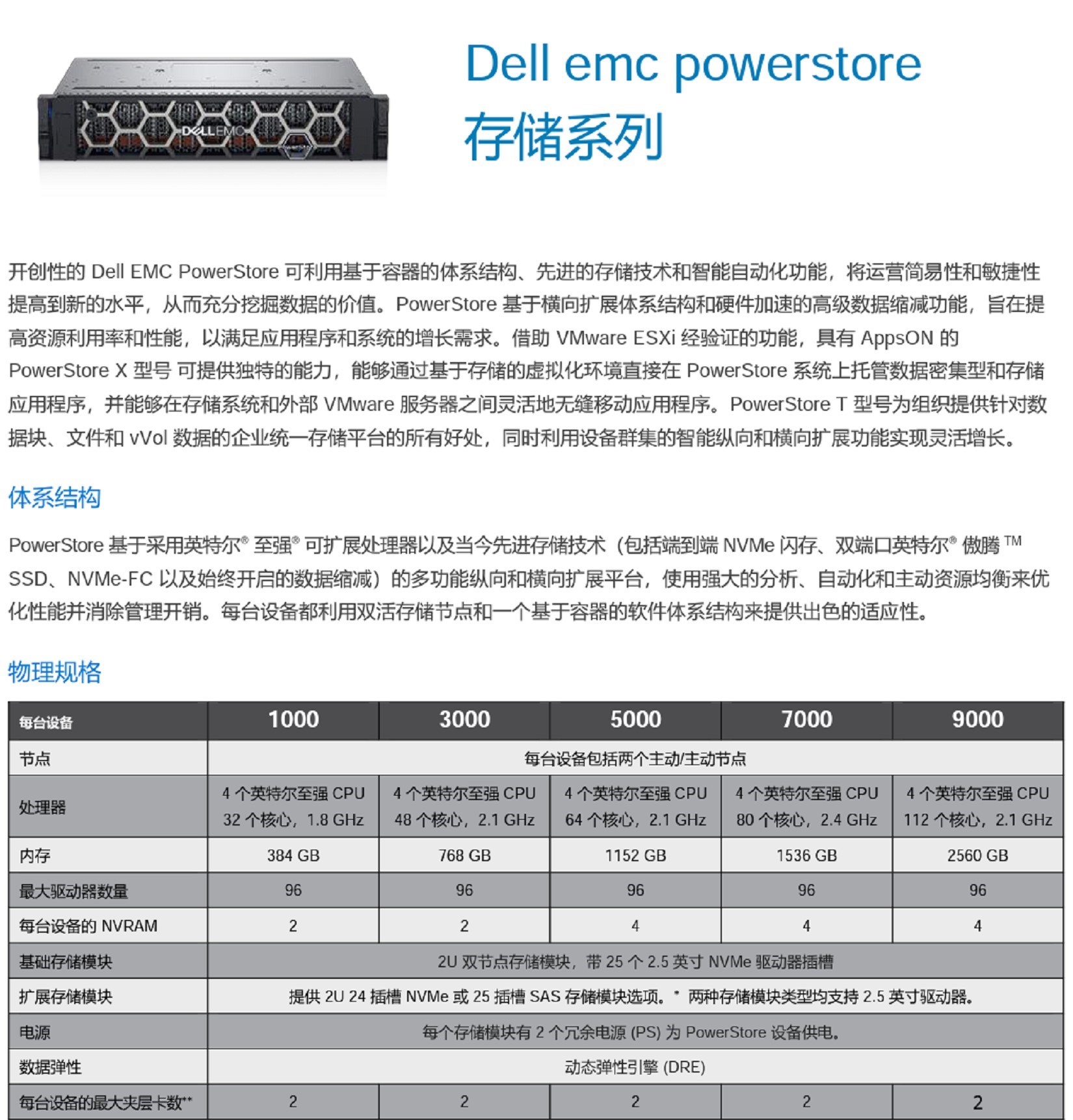 开创性的 Dell EMC PowerStore 可利用基于容器的体系结构、先进的存储技术和智能自动化功能,将运营简易性和敏捷性提高到新的水平,从而充分挖掘数据的价值。PowerStore 基于横向扩展体系结构和硬件加速的高级数据缩减功能,旨在提高资源利用率和性能,以满足应用程序和系统的增长需求。