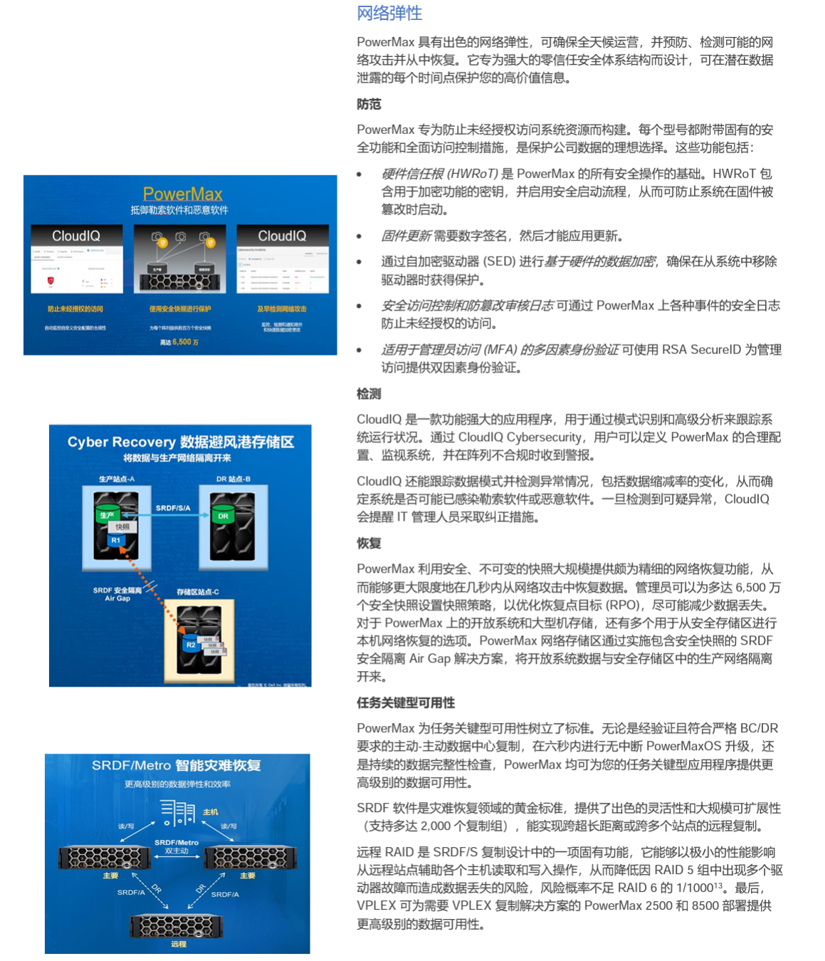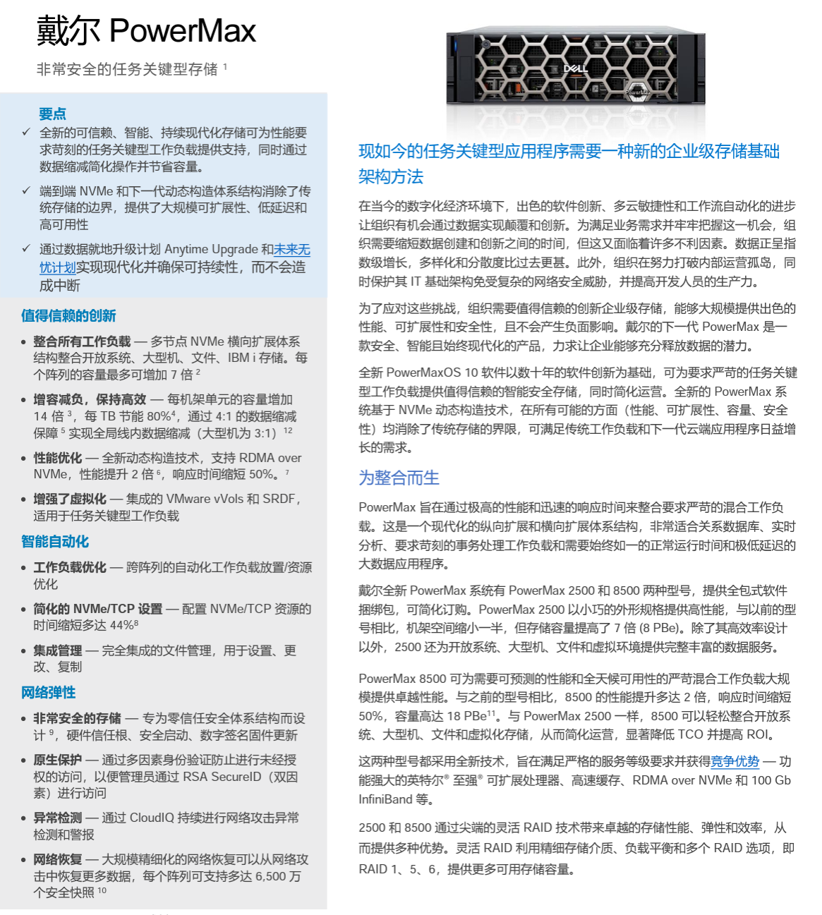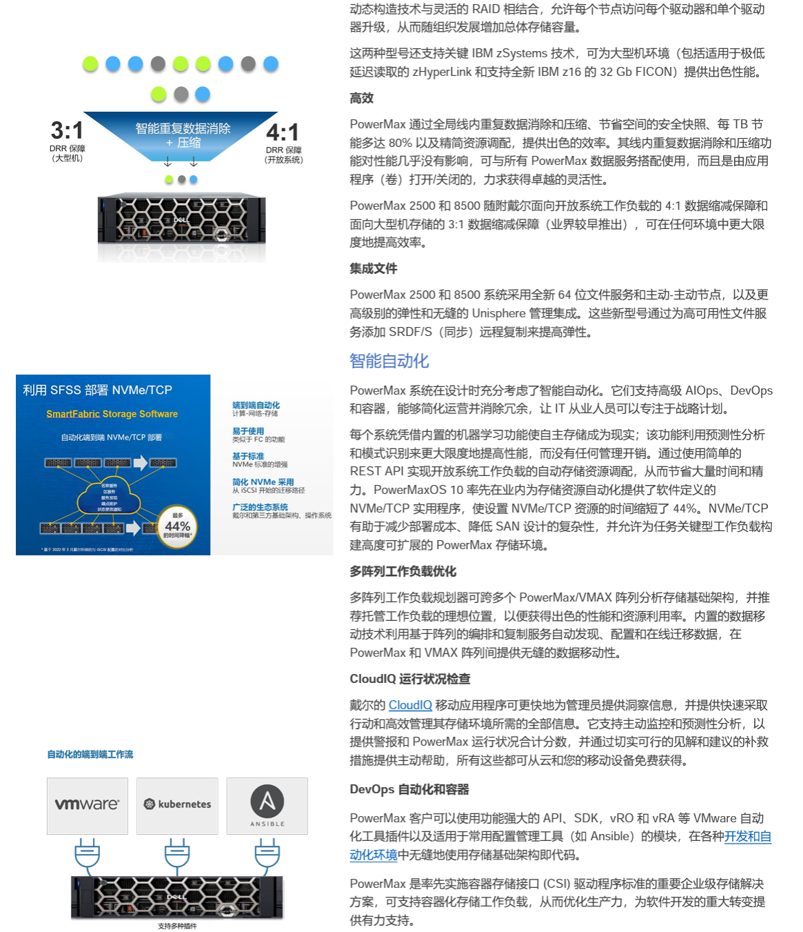 高度安全、极具动态性的全自动化 PowerMax,助您做好万全的准备。凭借智能自动化和大规模条件下依然卓越的性能,灵活应变,轻松满足不同需求。借助这款软件驱动型存储解决方案,贵组织可以节省时间和资源,同时让您有充足的机会,为下一步发展做好准备。