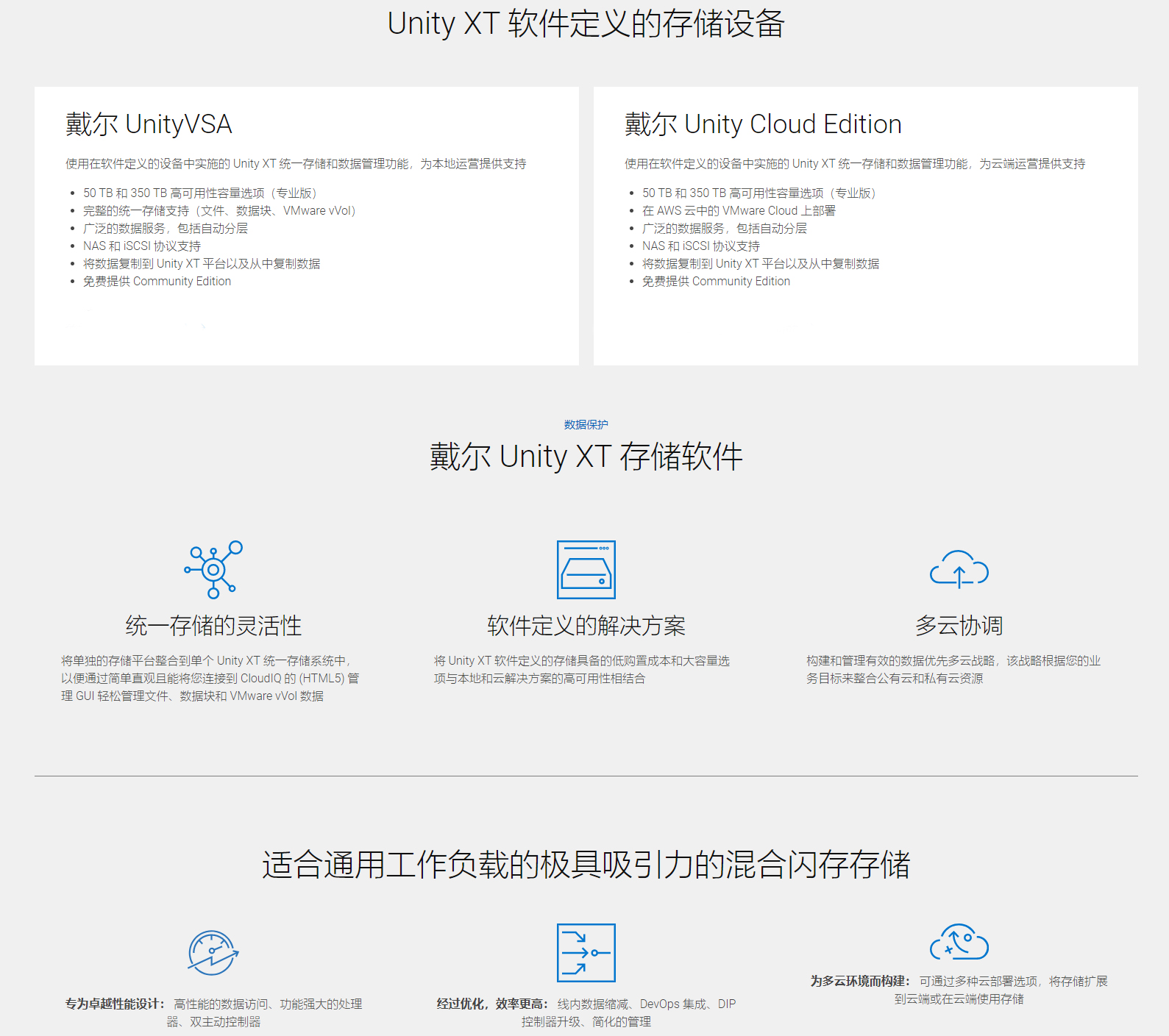 借助戴尔 Unity XT 混合闪存阵列,加速推进您的数字化转型之旅。这些存储系统是运行通用工作负载的理想解决方案,因为此类工作负载不要求全闪存/NVMe 体系结构的低延迟和速度。有了 Unity XT 混合闪存阵列 (HFA),您就不必在性能、效率、功能或结果上做出妥协。这些阵列兼具双主动控制器的高可用性、直观管理的简易性以及统包式软件模式的经济实惠,助您轻松获取和拥有 Unity XT HFA。