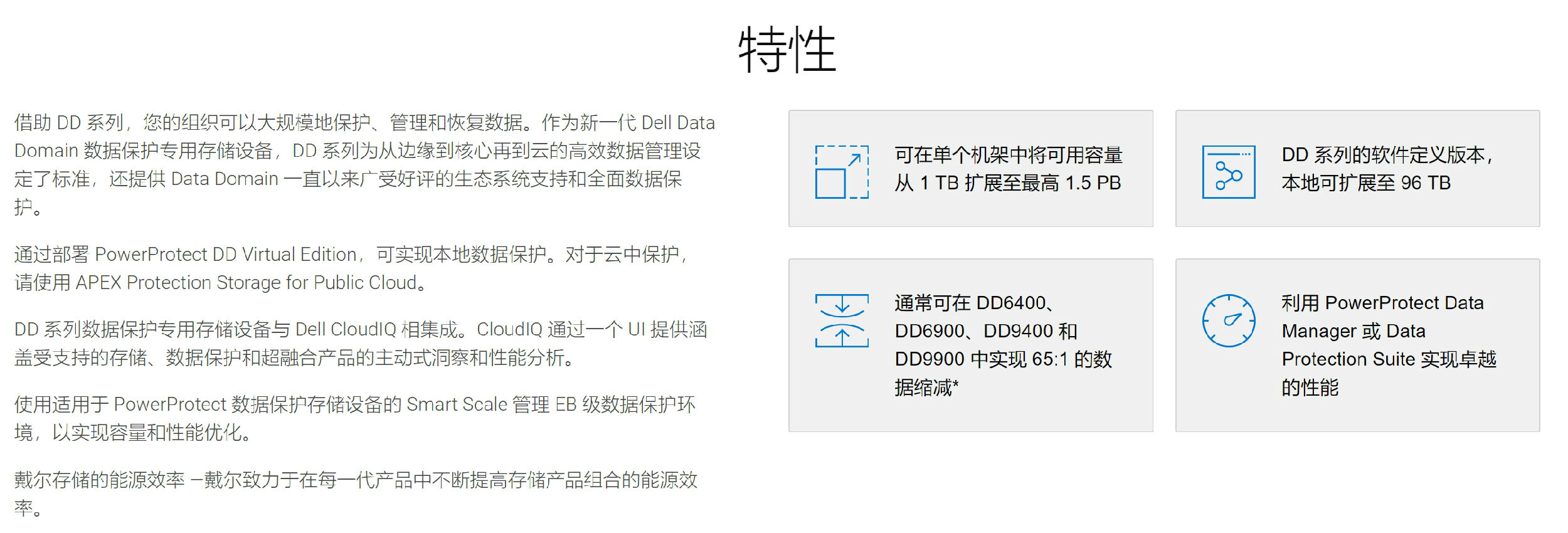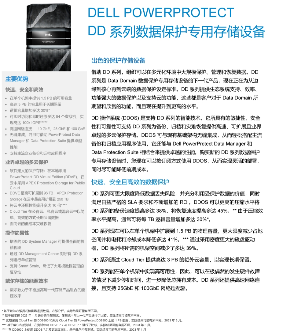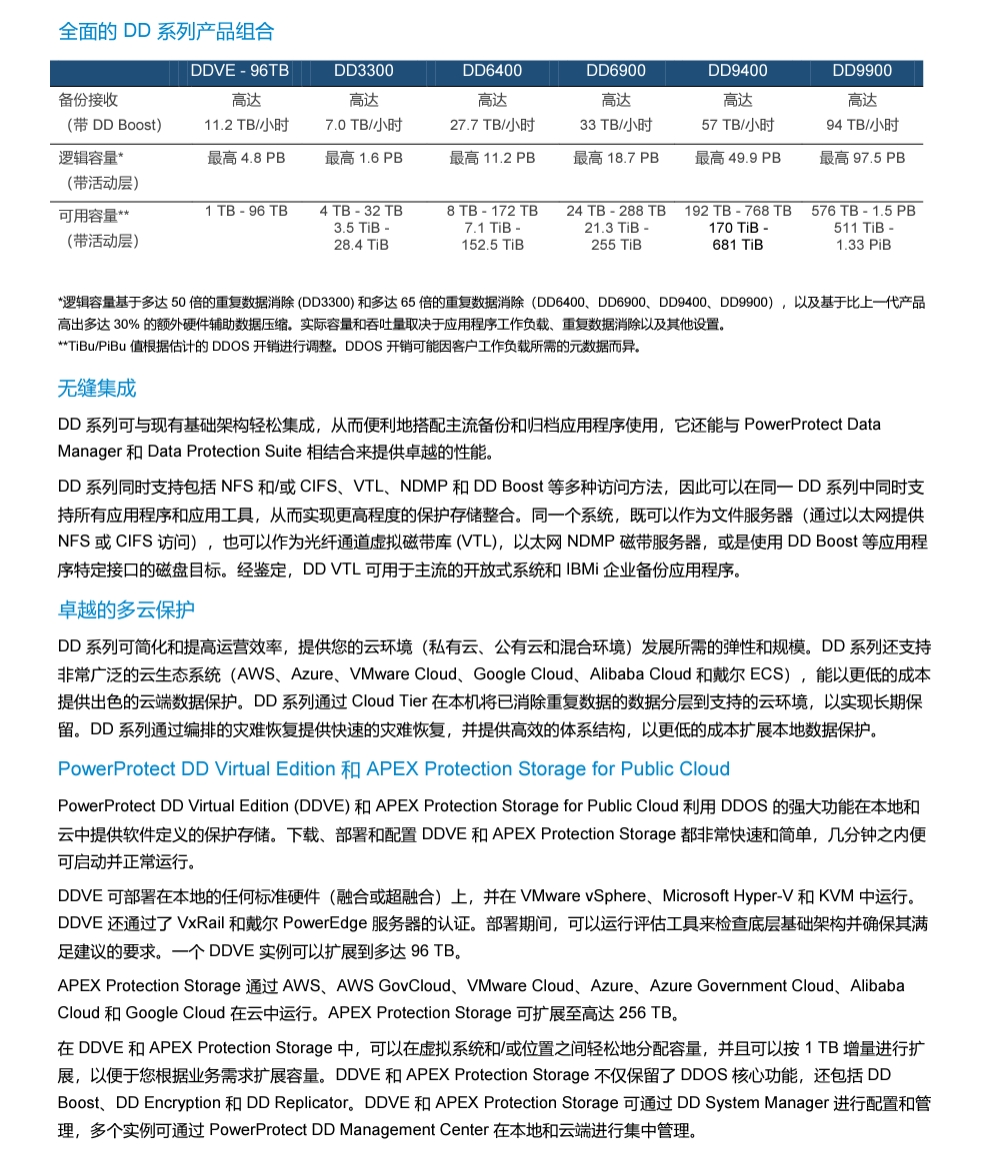 PowerProtect DD 支持广泛的数据保护软件生态系统,与业界卓越的 DD 数据保护专用存储设备实现本机集成,可通过增强的弹性、性能和规模保护您的数据;同时提供更快的备份、更低的网络利用率和卓越的数据缩减。