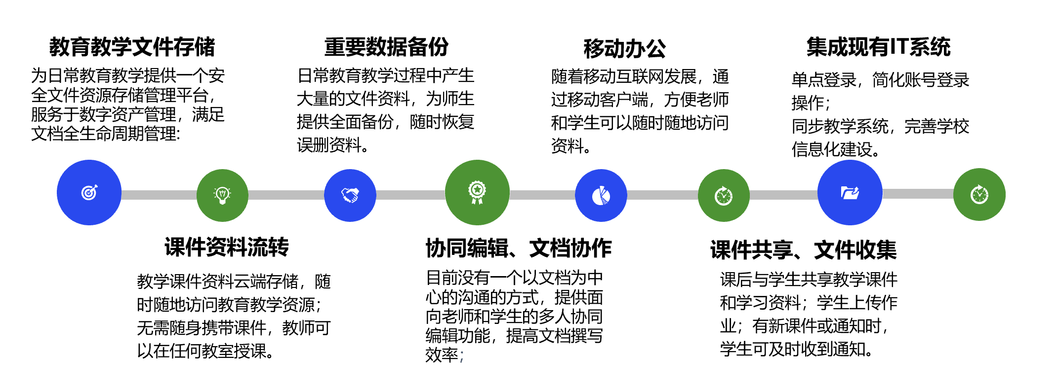 随着近年来师生间文件数据容量的不断增长,文件共享的方式愈加丰富与频繁,之前建设云盘的功能已无法满足师生对本地资料备份、课件传输分享、浏览器访问、移动化办公,当下文件流转等文件管理多样化的应用需求,系统后期运维缺少技术支撑。